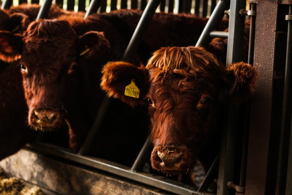 As much as our cattle are suited to the outdoor life while there is grass to eat, we bring them indoors during winter when the grass quality decreases and the wet, cold weather means they would damage our fields. Here we feed them on silage (fermented grass) that we cut during the summer, supplemented with cereals.